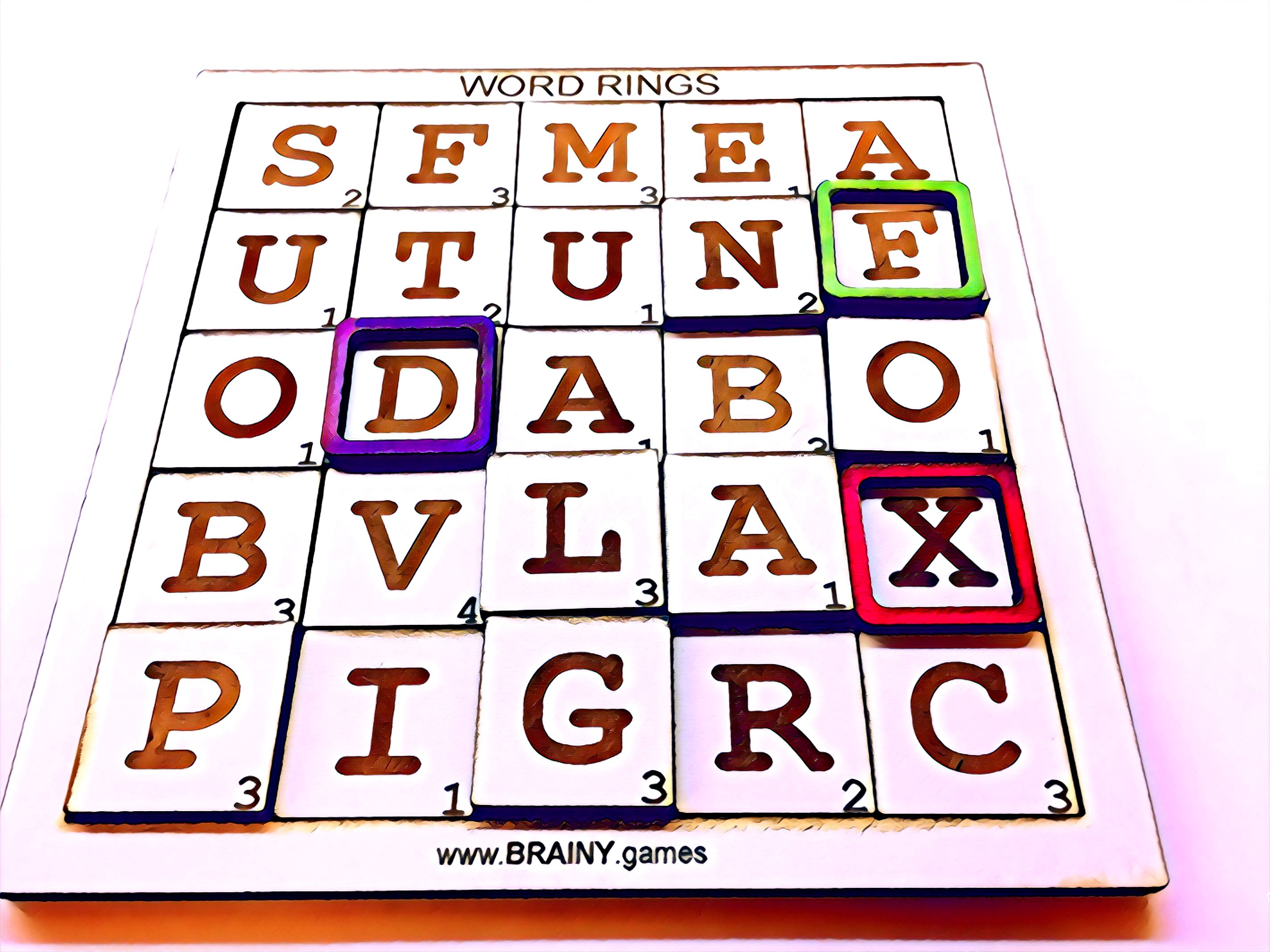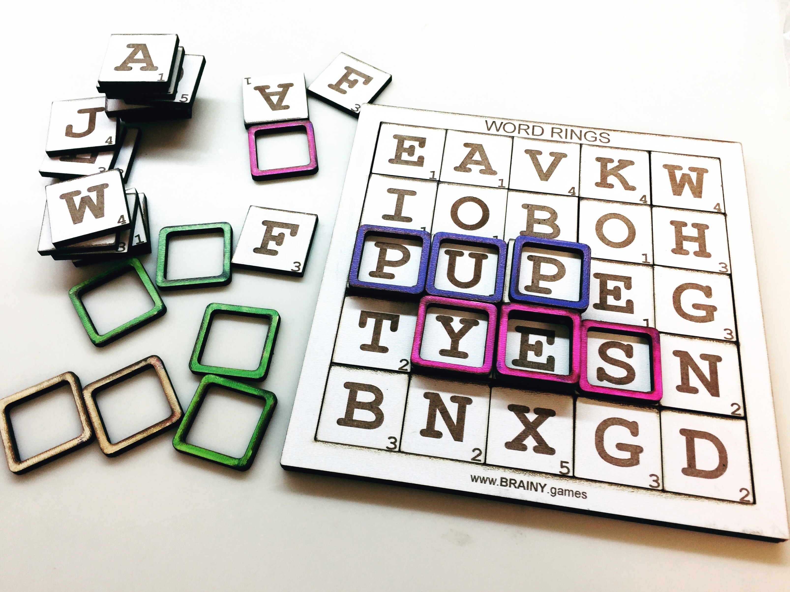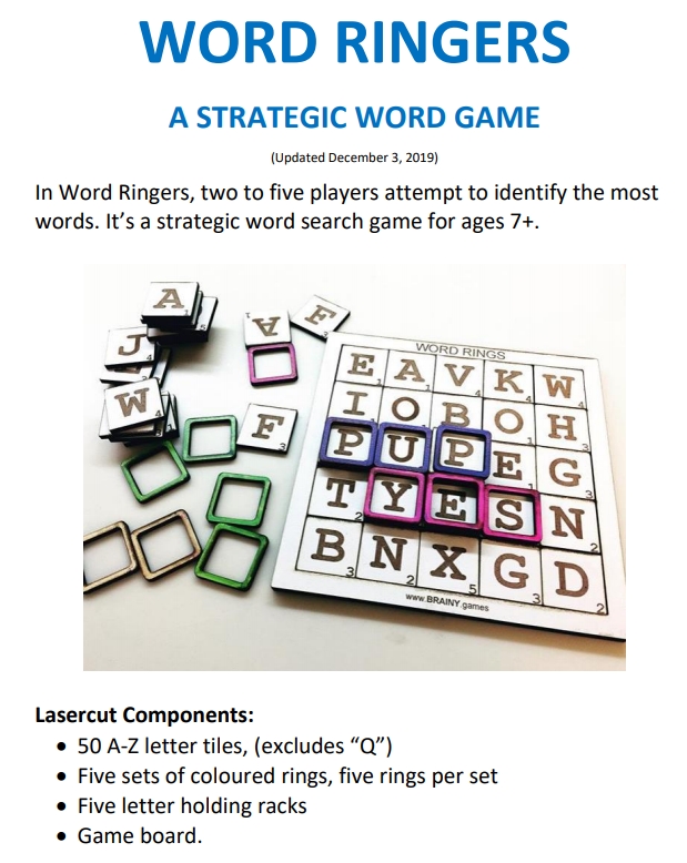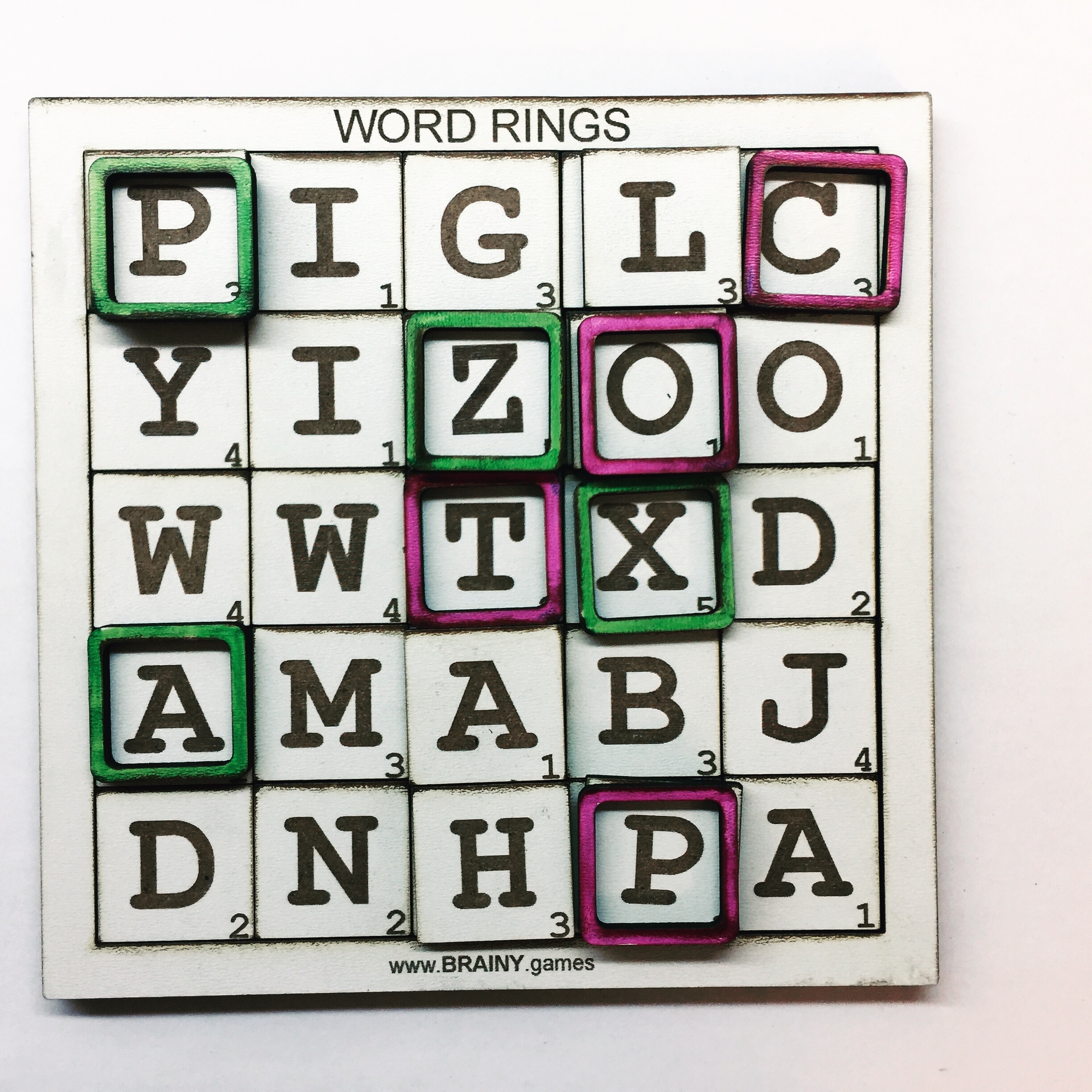 In Word Ringers, two to five players attempt to identify the most words. It's a strategic word search game. For 2-6 players, ages 7+.